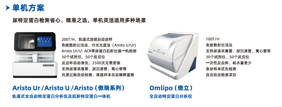 Aristo U/Ur特定蛋白分析儀是國賽生物推出的一款高端特定蛋白檢測儀,采用免疫散射比濁法和分光光度法,具有精密度高,檢測速度快,獨(dú)特的尿液封膜穿刺技術(shù),同時(shí)該機(jī)型具有軌道式自動進(jìn)樣系統(tǒng),支持流水線聯(lián)機(jī),可做到血尿分檢,減少檢測過程中交叉污染的發(fā)生。可提供ACR報(bào)告及豐富的尿蛋白系列檢測項(xiàng)目,為早期CKD篩查提供優(yōu)質(zhì)的解決方案。