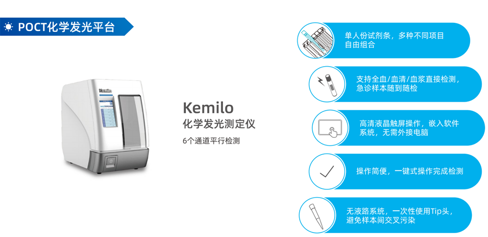國賽PCT、IL-6檢測方案目前擁有基于化學發光法的單人份檢測與全自動高通量檢測平臺,滿足不同級別臨床科室的需求。單人份檢測試劑無開瓶有效期的限制,有效避免試劑浪費,支持全血、血清、血漿多種類型樣本檢測,同時全血用量僅需35微升,更好地滿足兒童患者使用,適合等級醫院門急診及基層醫院、社區衛生服務中心。